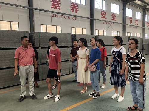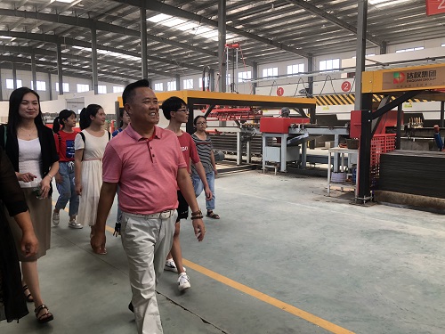 (集團董事長龐總帶領學生參觀混凝土墻板生產線)