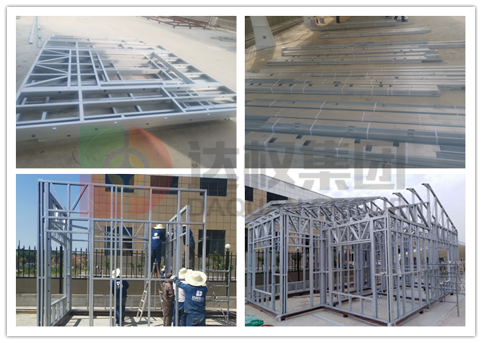2、輕鋼龍骨安裝:房屋根據(jù)鋼構(gòu)設(shè)計定制龍骨,該結(jié)構(gòu)體系所有配件均在工廠完成生產(chǎn)加工,直接運往現(xiàn)場進行安裝,連接部位使用自攻釘進行固定。